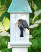 1.5" entry is for Eastern bluebirds. Features lift-off roof for easy clean out, maintenance free... except for nest removal! Vinyl mounting collar fits right on your 4 x 4 post.